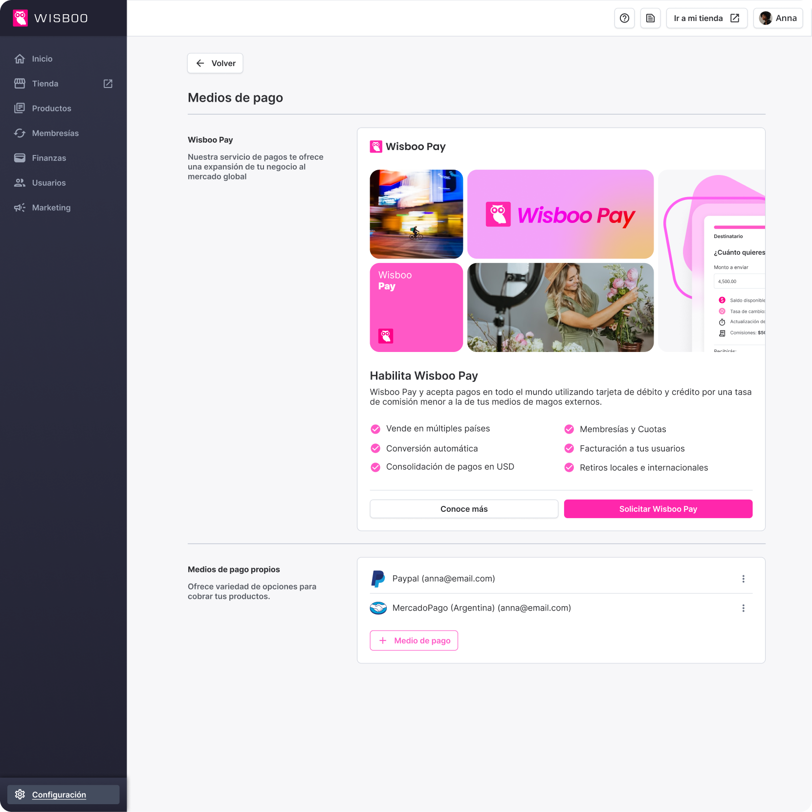 Habilita tu cuenta en Wpay y comienza a vender en más de 15 mercados de forma inmediata.